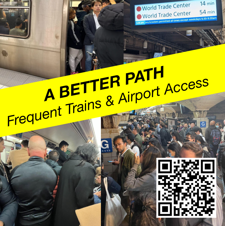 The Port Authority’s proposed $3.5B AirTrain is far over budget and does not provide the service our region needs. The PATH ends 3 miles from EWR, and riders must still transfer to NJ Transit and the AirTrain to reach the airport.